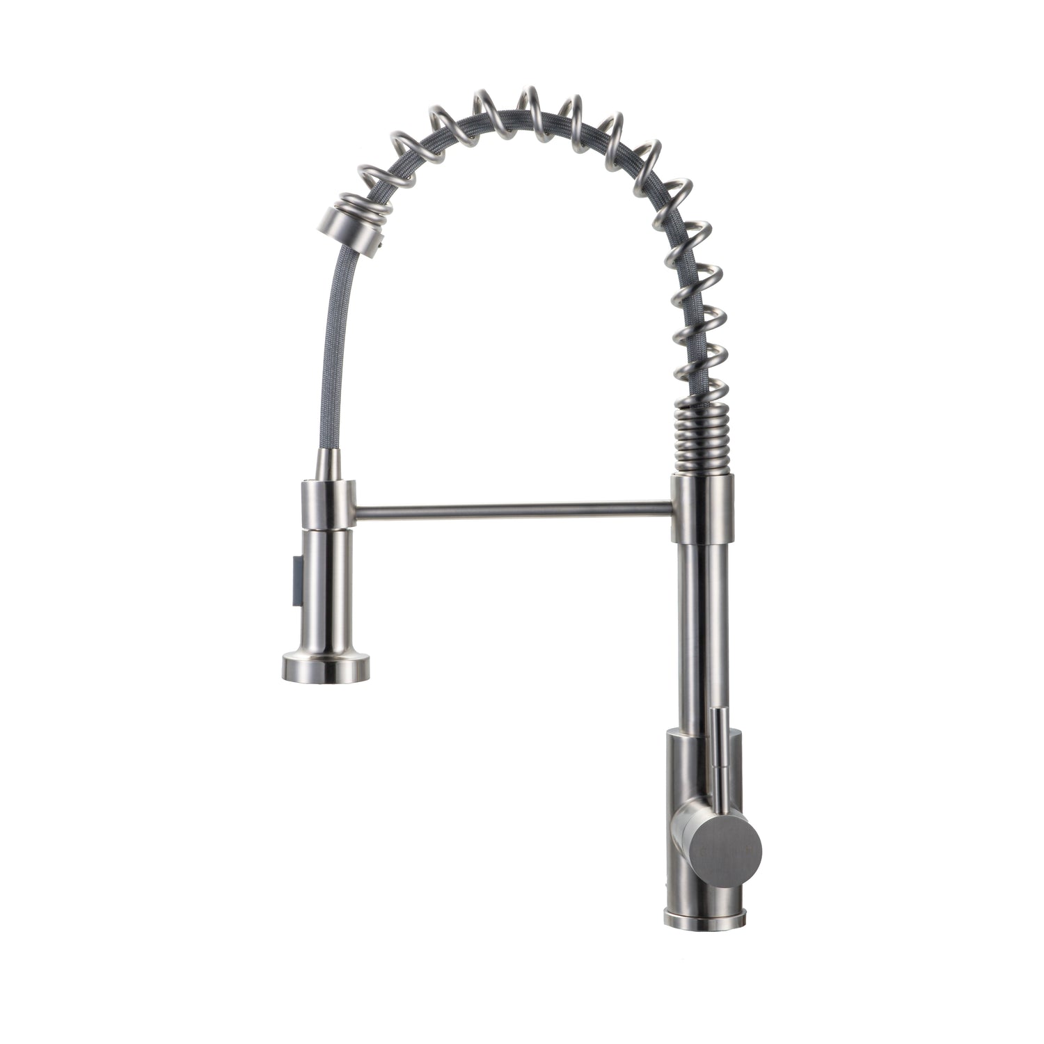 Professional Kitchen Faucet - 19" Commercial Pull Down Sprayer, Stainless Steel 304, Industrial Spring Coil Design, Matte Finish, Dual-Function Stream/Spray